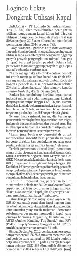 Logindo Fokus Dongkrak Utilisasi Kapal