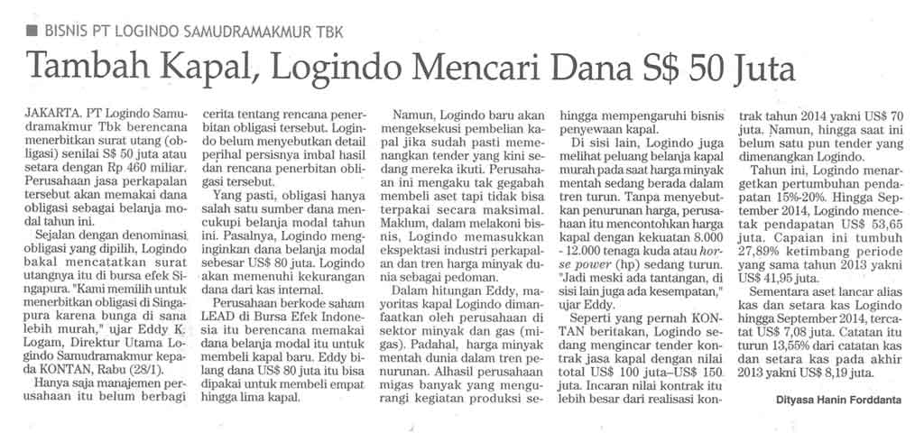Tambah Kapal, Logindo Mencari Dana S$ 50 Juta